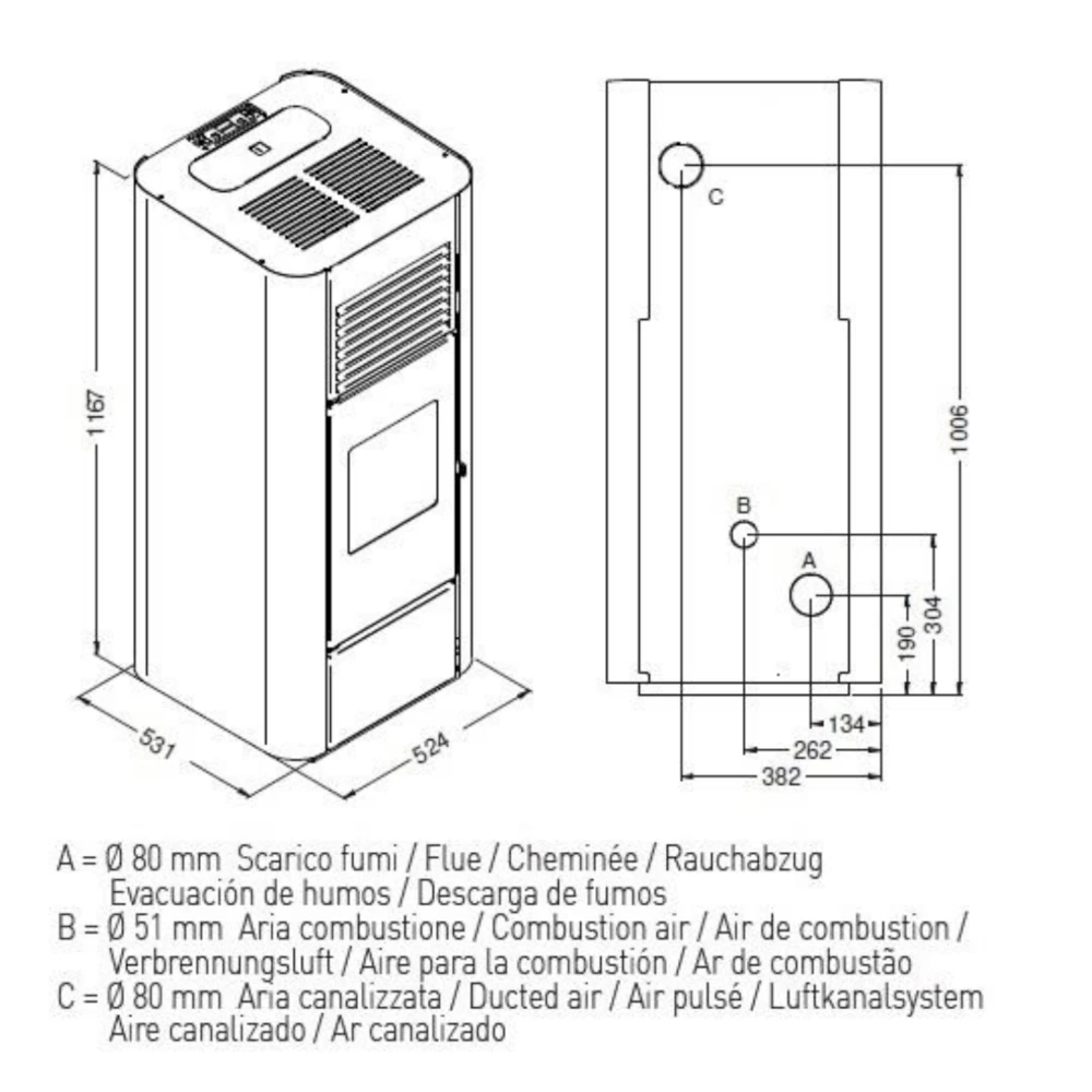 Rookkanaal uitgang: Ø 80 mm