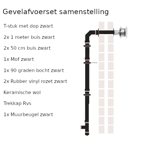 Ondanks het vermogen is het uiterlijk van pelletkachel Milù 14 kW normaal met zijn formaat van 49x50x107cm. Het is dus niet zo dat de kachel heel erg aanwezig is in de ruimte die verwarmt moet worden. Met een uitgang aan de achterkant kan men zelf de keuze maken voor het rookkanaal. Wil je direct door de muur buiten langs de gevel omhoog of kies je voor buizen binnen langs de muur omhoog. Beide zijn mogelijk, in het laatste geval krijg je een echt kachel gevoel met het rookkanaal binnen langs de wand.